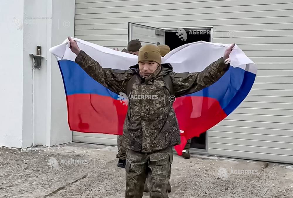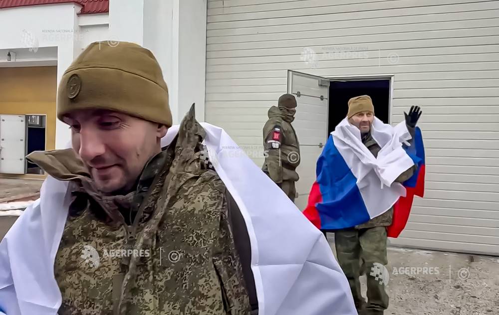 epa12882506 A still image taken from a handout video provided by the Russian Defence Ministry press service shows Russian prisoners of war (POWs) reacting following a prisoner swap at an undisclosed location in Belarus, 11 April 2026. Russia announced the exchange of 175 prisoners of war each with Ukraine. EPA/RUSSIAN DEFENCE MINISTRY PRESS SERVICE/HANDOUT HANDOUT EDITORIAL USE ONLY/NO SALES
