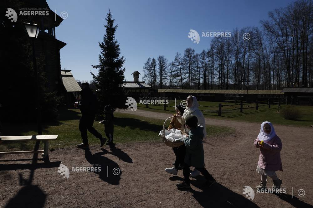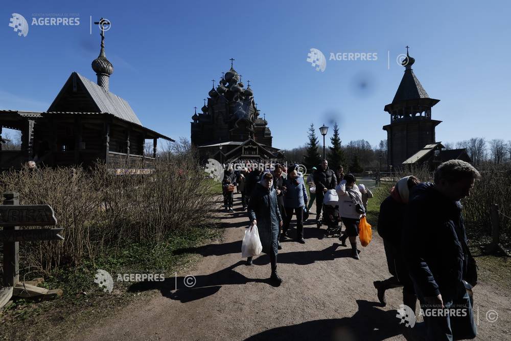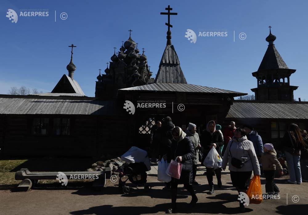 epa12882472 Russian Orthodox believers celebrate Orthodox Easter at the Church of the Intercessio...