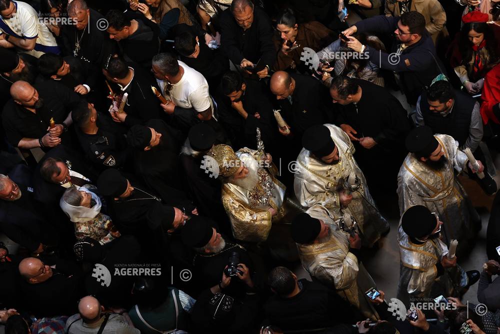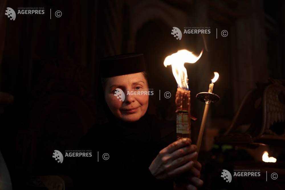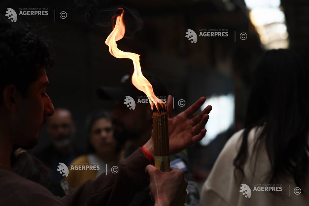 epa12882541 An Orthodox Christian holds a candle lit during the 'Holy Fire' ceremony at the Churc...