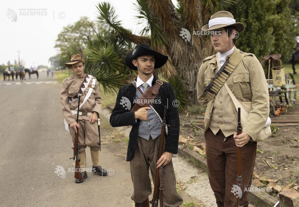 epa12882592 Young Afrikaner men and women dressed in Boer clothing take part in the annual 'Boer ...