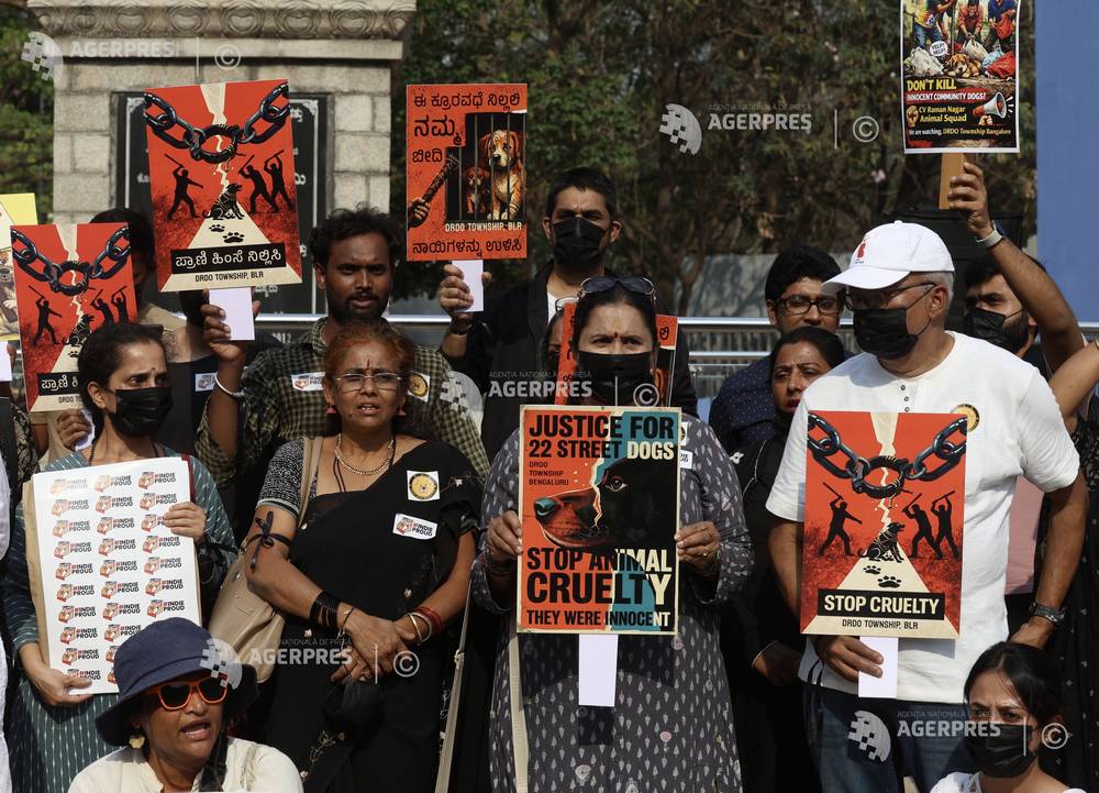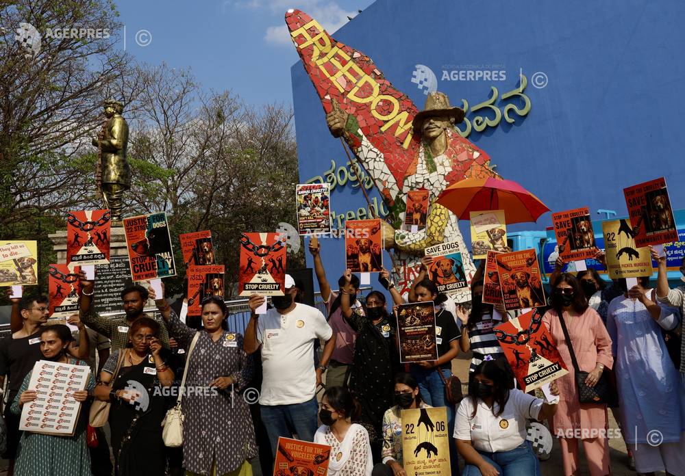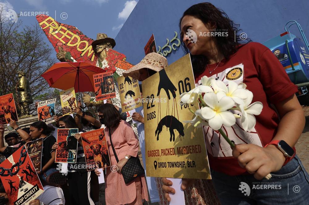 epa12882688 Citizens and animal welfare activists hold placards and shout slogans to 'Save the St...