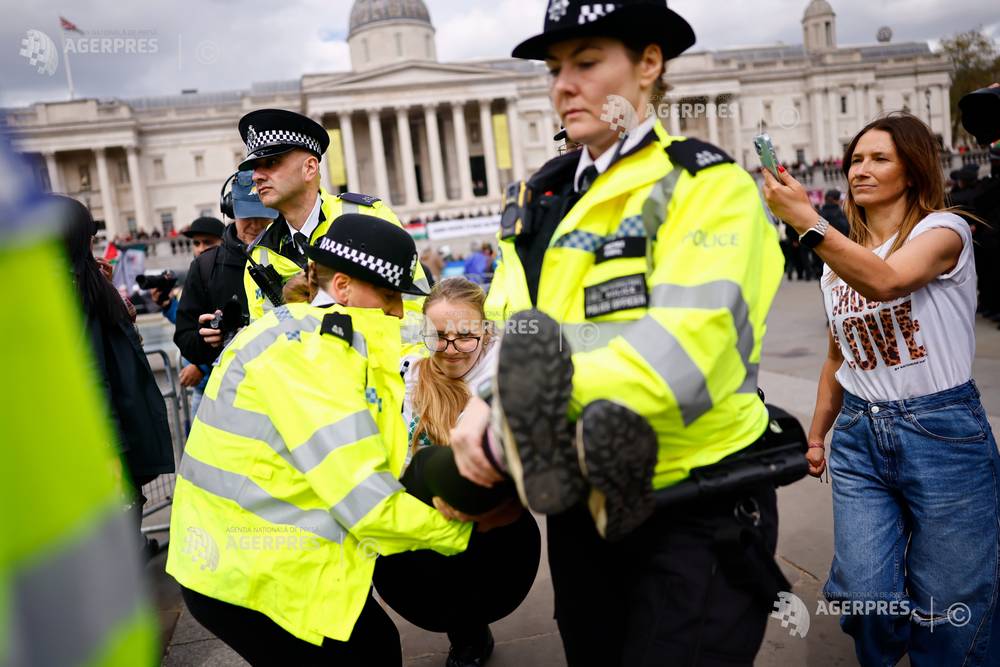 epaselect epa12882423 Police officers arrest a supporter of Palestine Action during a mass protes...