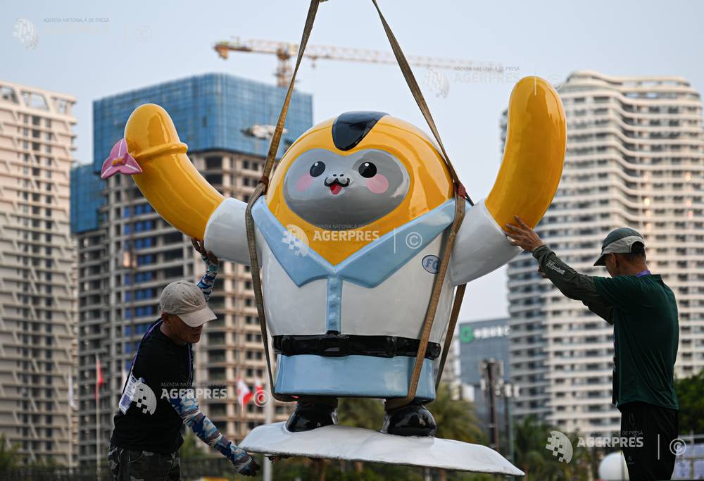 (260411) -- HAIKOU, April 11, 2026 (Xinhua) -- Health and companionship robots are pictured at the Hainan International Convention and Exhibition Center, the main venue for the upcoming sixth China International Consumer Products Expo (CICPE), in Haikou, south China's Hainan Province, April 11, 2026. Scheduled to take place in south China's Hainan Province from April 13 to 18, this expo will see the participation of more than 3,400 brands from over 60 countries and regions. (Xinhua/Pu Xiaoxu)
