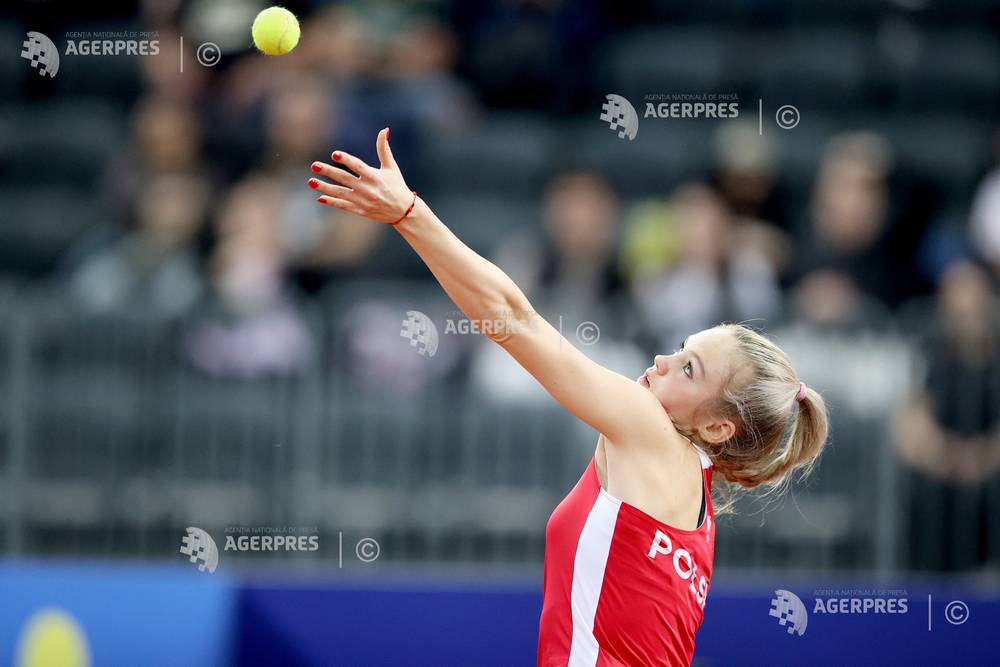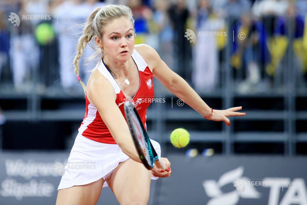 epa12881182 Katarzyna Kawa of Poland in action against Elina Switolina of Ukraine during the Billie Jean King Cup qualifier match between Poland and Ukraine in Gliwice, Poland, 10 April 2026. EPA/Jarek Praszkiewicz POLAND OUT
