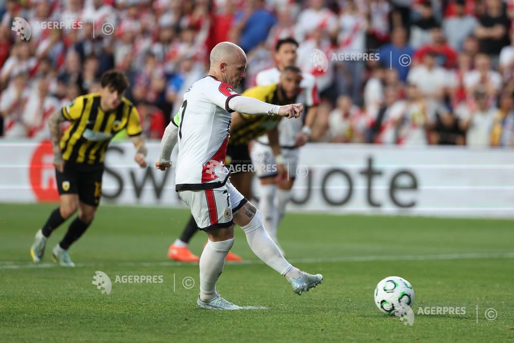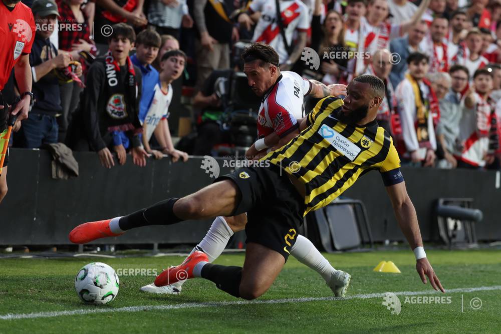 epa12882979 Elche's Aleix Febas vies for the ball against Valencia's Lucas Beltran (R) during the Spanish LaLiga soccer match between Elche CF and Valencia CF, in Elche, Alicante, Valencia, Spain, 11 April 2026. EPA/Pablo Miranzo